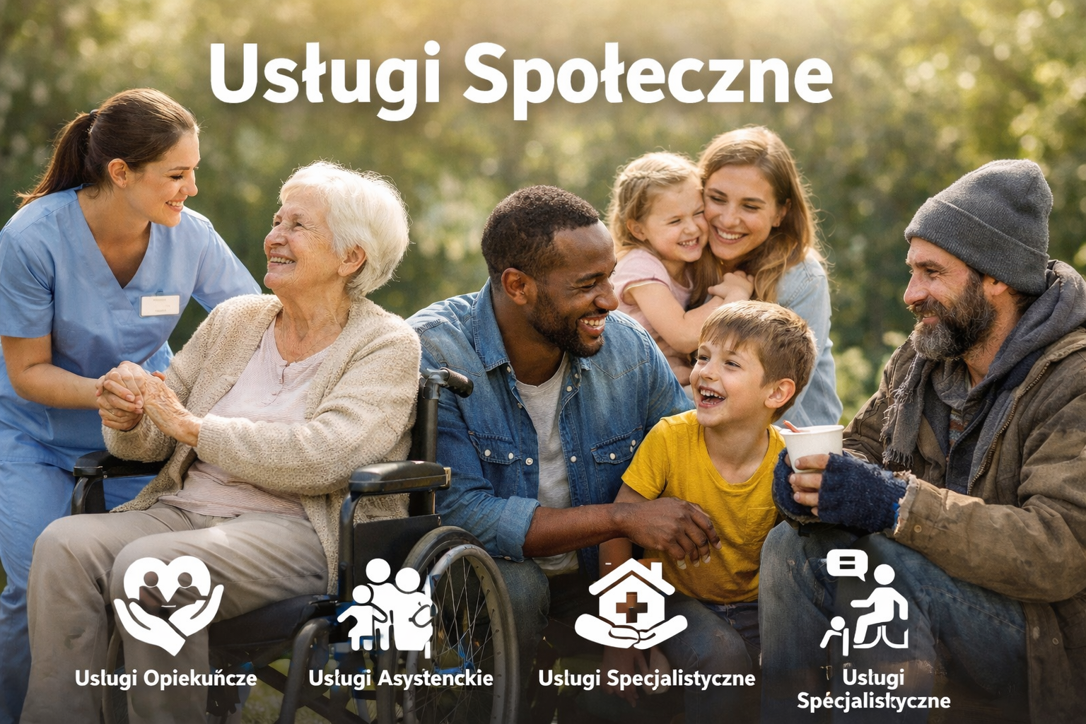 Usług opiekuńczych i asystenckich – wsparcie seniorów, osób z niepełnosprawnościami i ich rodzin.