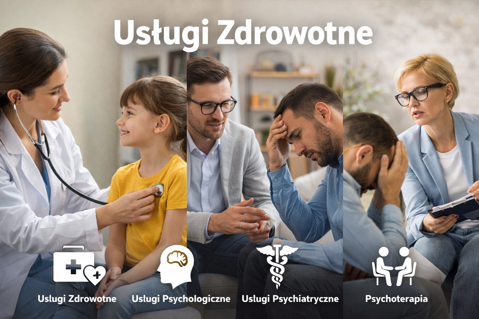 Usług zdrowotnych i psychologicznych – pomoc psychologiczna, psychiatryczna oraz wsparcie w trudnych sytuacjach życiowych.